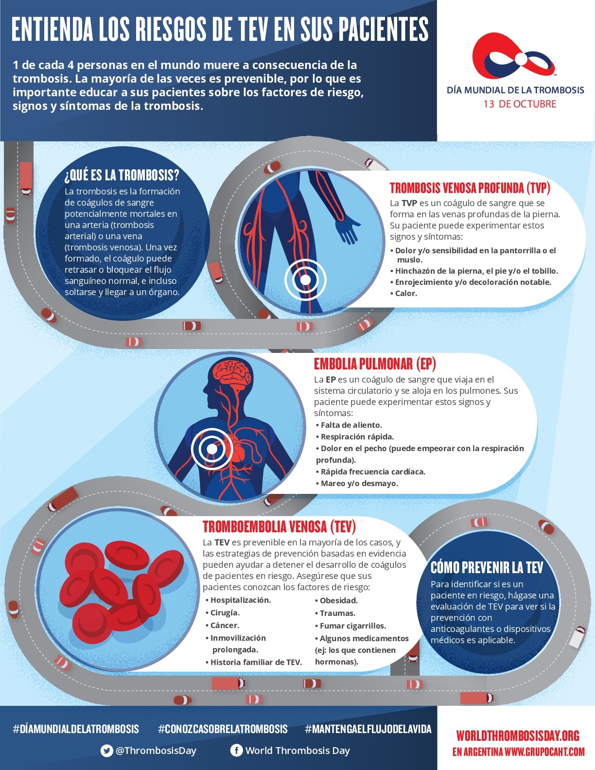 El Día Mundial de la Trombosis constituye un esfuerzo global, que nuclea médicos, científicos, asociaciones profesionales y grupos de pacientes en torno a un objetivo común, que consiste en generar conciencia acerca de la magnitud del problema relacionado a la trombosis y resaltar la necesidad urgente de llevar a cabo acciones al respecto; específicamente subrayando la amenaza no reconocida y las graves consecuencias asociadas a la morbimortalidad de la trombosis arterial y venosa.